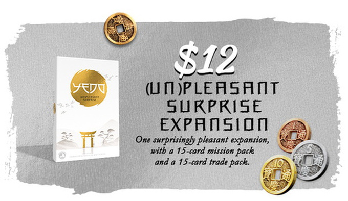 Each copy of the (Un)pleasant Surprise expansion comes packed with reprinted cards for Yedo Deluxe Master Set first print, and a printed errata sheet to clarify the first printing rulebook.