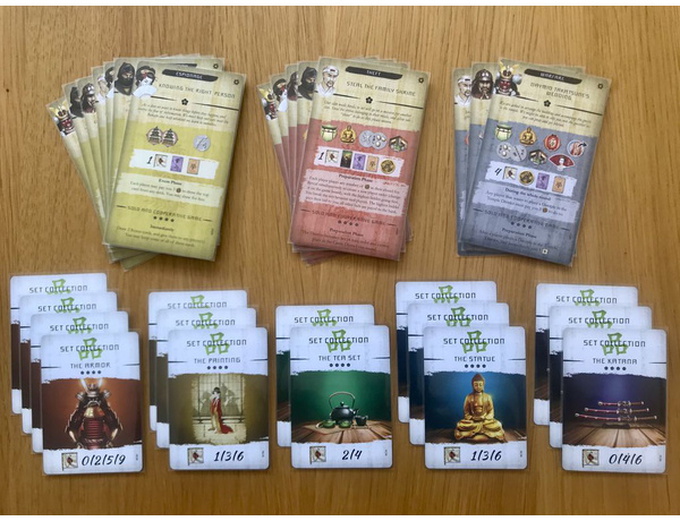 - 15 Card Trade Pack that come with a completely new mechanism: set collection. The Shonin part of the expansion will allow players to buy semi-random luxury goods at the Harbor and in the Gates District. These can be traded between players – and will offer point boosts at the end of the game. As befitting a wealthy and powerful clan, you will try to create a collection that surpasses others – and score the most points.