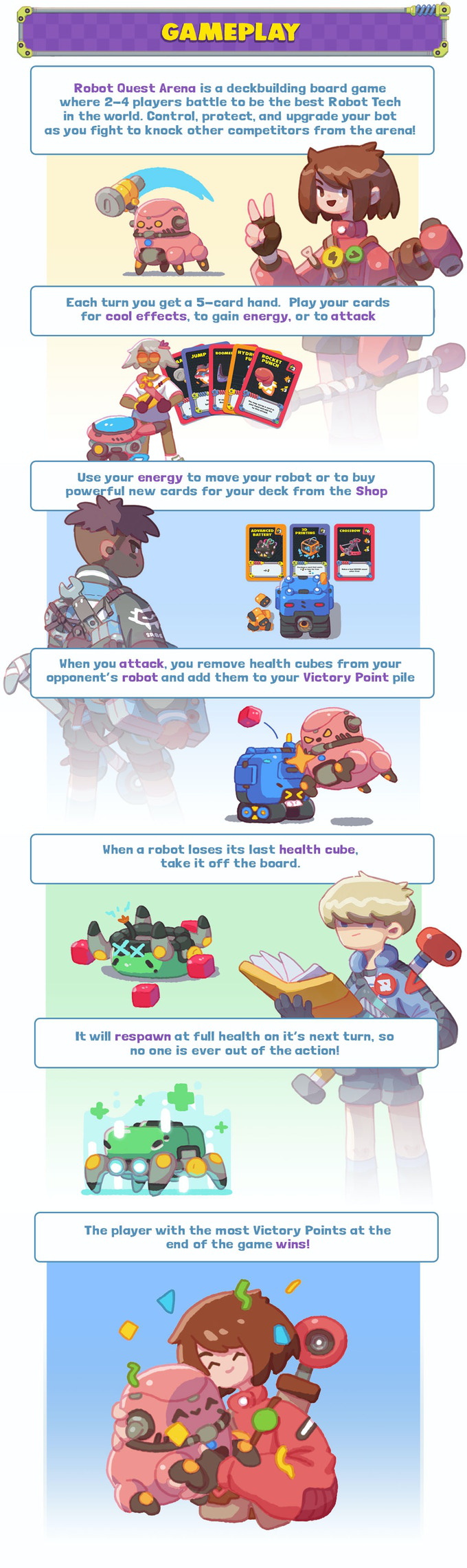 Robot Quest is a 2-4 player deck-building board game of robot battles!