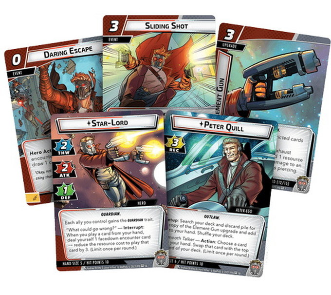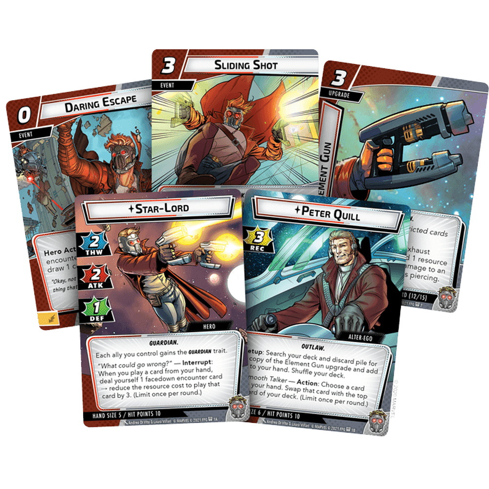 Lead the Guardians of the Galaxy into battle against the villain in the Star-Lord Hero Pack for Marvel Champions: The Card Game, which introduces Star-Lord as a brand-new playable hero, along with his fifteen signature cards. Fittingly, Star-Lord uses the Leadership sphere, and you’ll find a full assortment of new Leadership cards, as well as plenty of cards that reward you for uniting the Guardians of the Galaxy. With the new Guardian synergies unlocked, and a new player card for every sphere that rewards you for using the Aerial trait, you won’t want to let the Star-Lord Hero Pack fly past you.