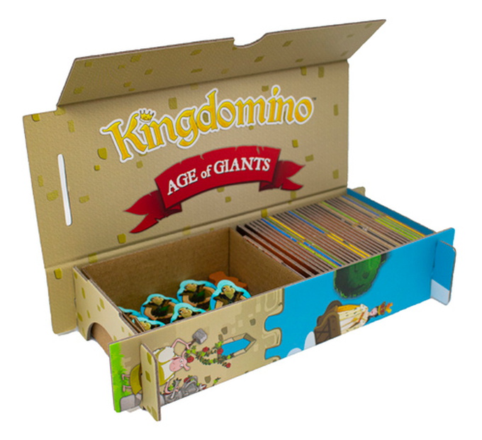 Kingdomino: Age of Giants is an expansion that requires either Kingdomino or Queendomino to play. This expansion adds new dominoes, new giant tokens, new challenge tiles, and additional components to allow a fifth player to join the game.