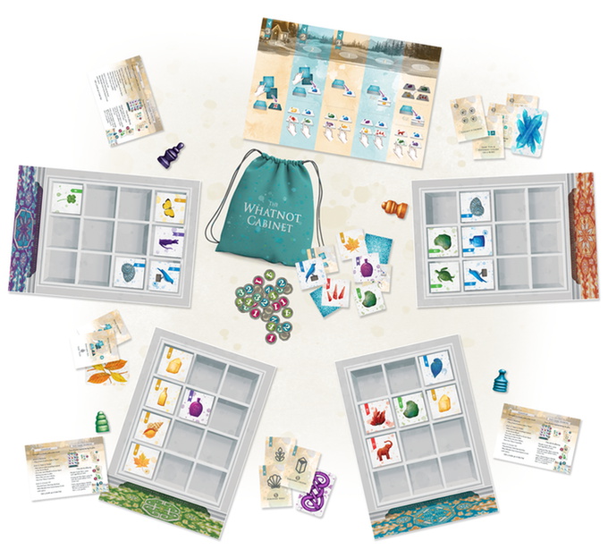 Collect tiny objects and score the most points by creating the best whatnot cabinet. Each round players travel away from home to find trinkets and doodads to add to their cabinets. As they do, they score curio points for sets of like objects, different, and various other unique setups.
