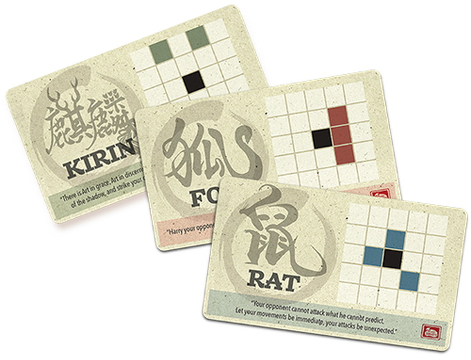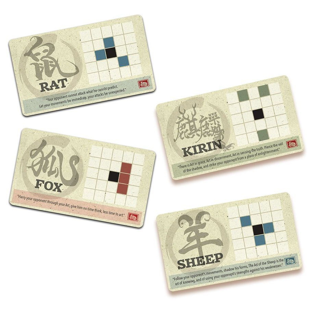 The Onitama: Sensei's Path expansion consists of sixteen new movement cards that can be shuffled together with those of the Onitama base game in order to have more variety during play.