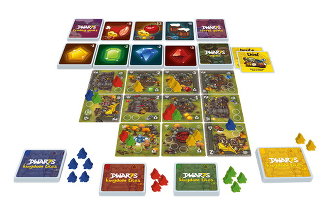 Each tile has a pre-requisite of how many dwarfs of one player are needed to perform one kind of action. For example: emerald mines have always three slots, but you will need only two dwarfs to take one emerald. When this task is done (collect one emerald) your two dwarfs will return to your pool.