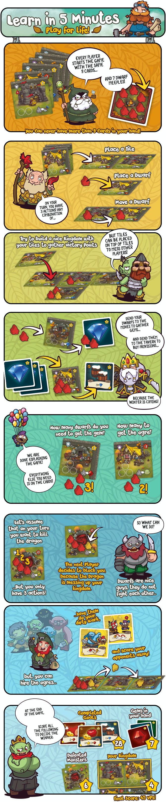 To survive the long and terrible winter approaching, the dwarves need to prepare. It’s time to collect gems, build castles and stock up enough food. The fire dragons are sleeping. The giants of winter, lurking. The fall is precious and is vital to plan your actions wisely.
