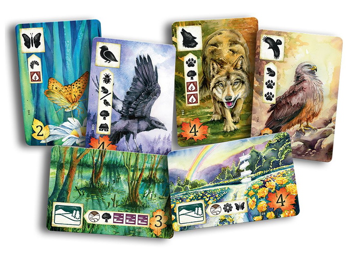 Meadow is an engaging set collection game with over two hundred unique cards containing hand-painted watercolor illustrations. In the game, players take the role of explorers competing for the title of the most skilled nature observer. To win, they collect cards with the most valuable species, landscapes, and discoveries. Their journey is led by passion, a curiosity of the world, an inquiring mind, and a desire to discover the mysteries of nature. The competition continues at the bonfire where the players race to fulfill the goals of their adventures.
