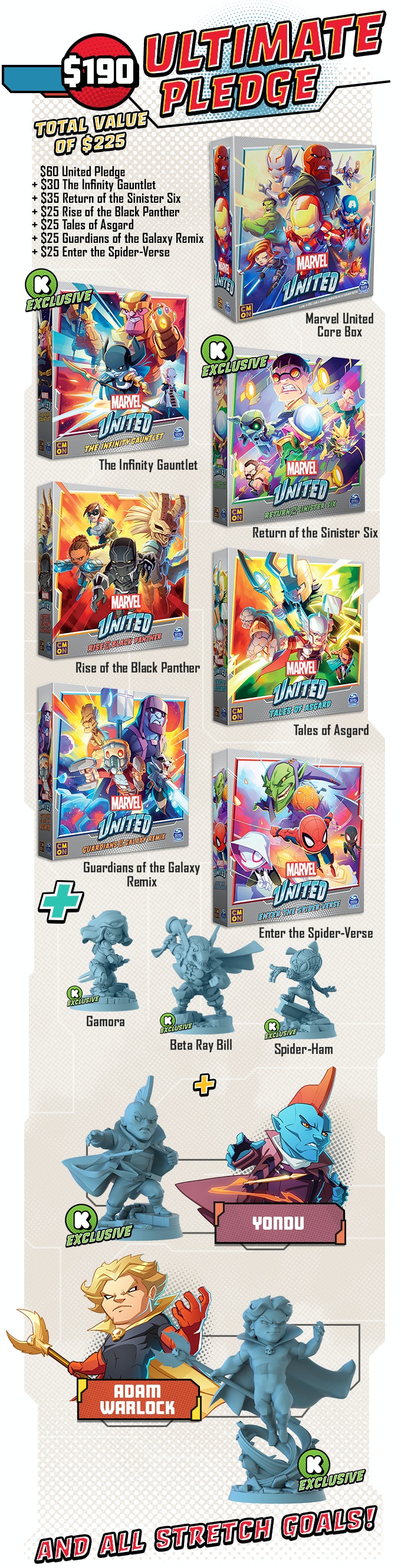 It’s time to become the Heroes you were always meant to be! Designed by Eric M. Lang and Andrea Chiarvesio, Marvel United is a fast-paced cooperative game where players take control of Marvel Super Heroes and band together to thwart the master plans of the most dangerous Villains in the universe. With an all-new visual take by Edouard Guiton, brought to life in fantastic sculpts, Marvel United will challenge you and your friends. Only by standing united will you have any chance of victory!
