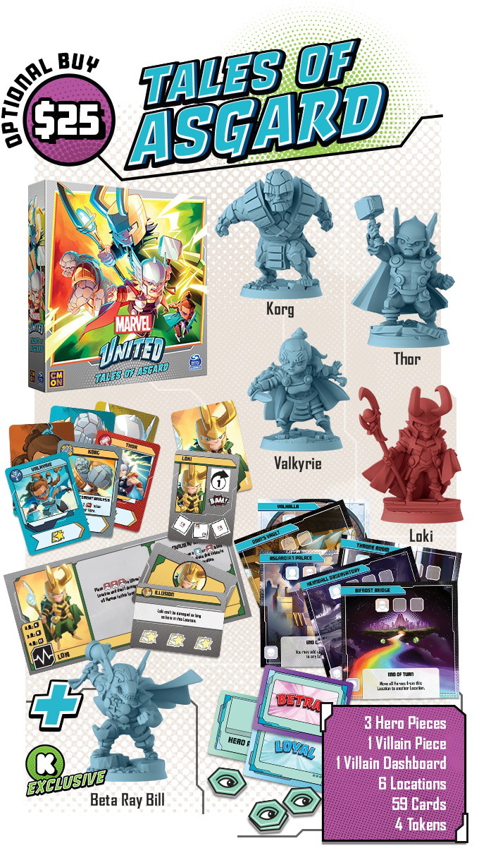 The Realm Eternal stands as a bastion of justice throughout the cosmos. Only Loki, the God of Mischief, dares threaten Asgard’s peace in his obsession with usurping the throne. Loki’s minions, all traitors and henchman mired in his tricks and illusions, work both secretly and openly to execute his master plan. It’s up to Thor, Valkyrie, and Korg to untangle the web of intrigue and bring Loki to justice. Trouble is, even knowing Loki’s ultimate goal, one can never be certain what traps the Trickster God has laid for the Heroes pledged to thwart his rightful rule.