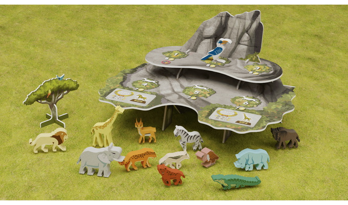 When animals are placed on the Main Board in the same pattern as displayed on the Scene Card, the scene can be completed.