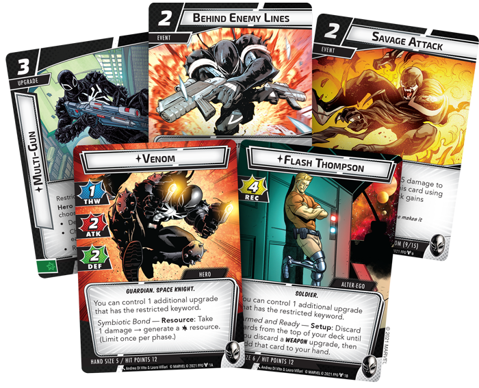 Venom’s extensive arsenal and resourcefulness make him a valuable ally to the Guardians of the Galaxy. The Guardians arrive in Marvel Champions: The Card Game with The Galaxy’s Most Wanted, and you can look forward to Venom joining their ranks when the Venom Hero Pack