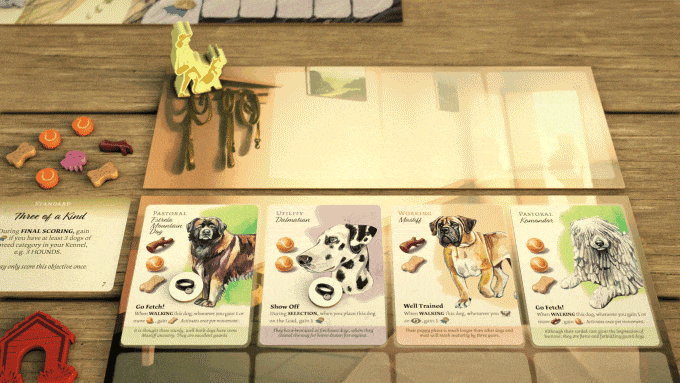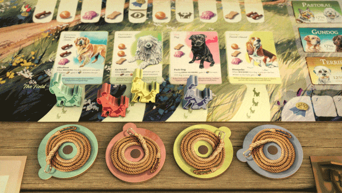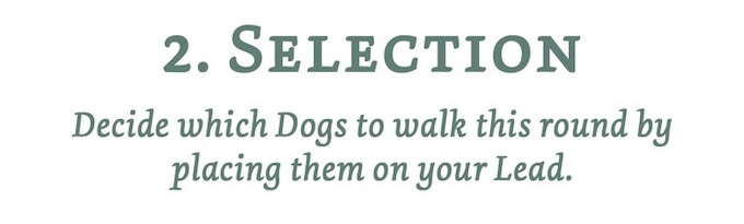 - Selection Phase: Players decide which dogs to place on their lead to walk this round.