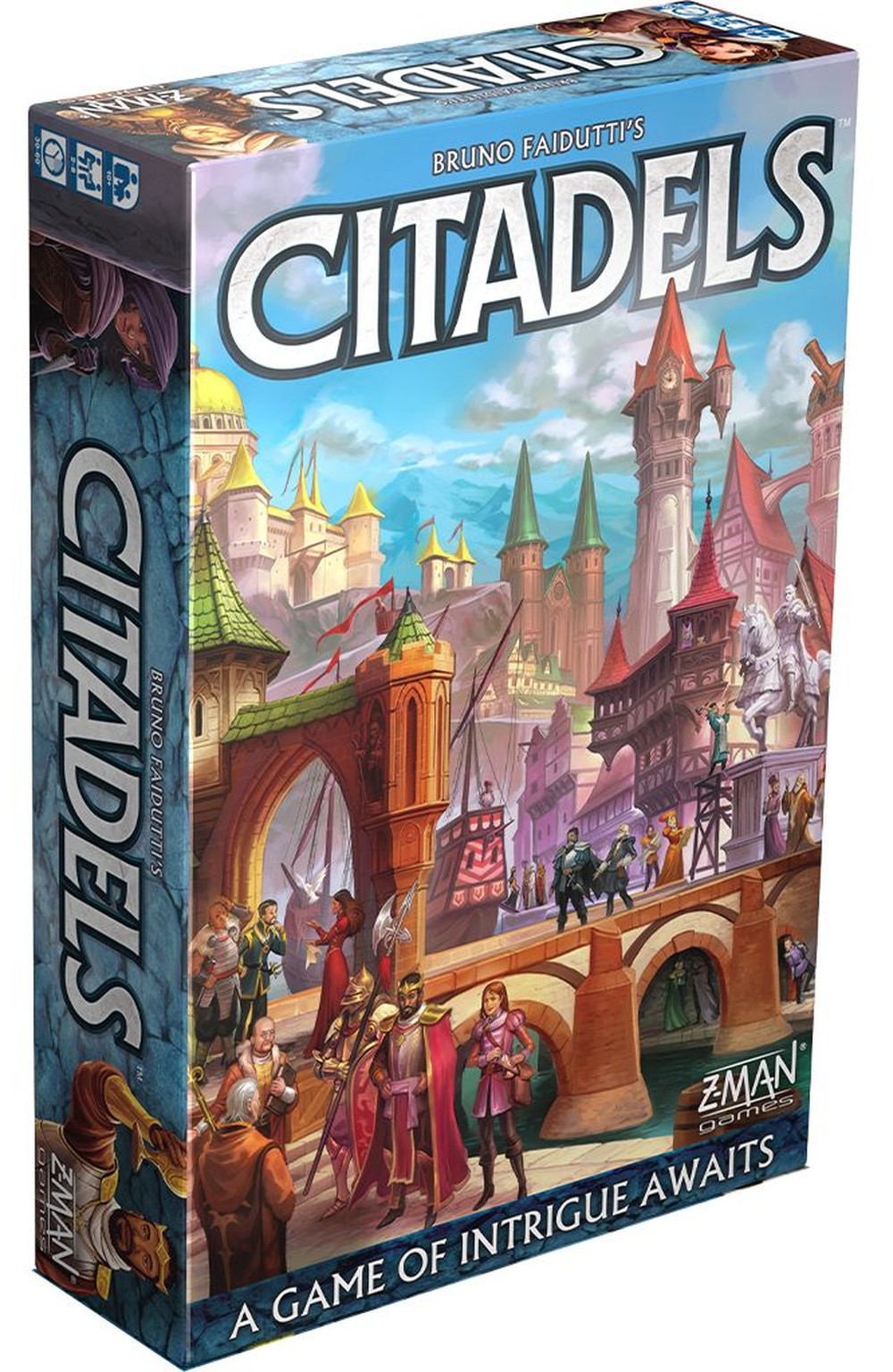 Designed by Bruno Faidutti and originally released in 2000, Citadels is considered one of the great card games of the modern era. The Citadels Deluxe edition expanded on Citadels Classic, changing the art and adding more characters and districts. This new revised edition contains all the great content included in Citadels Deluxe, but is scaled to fit a smaller, more portable box.
