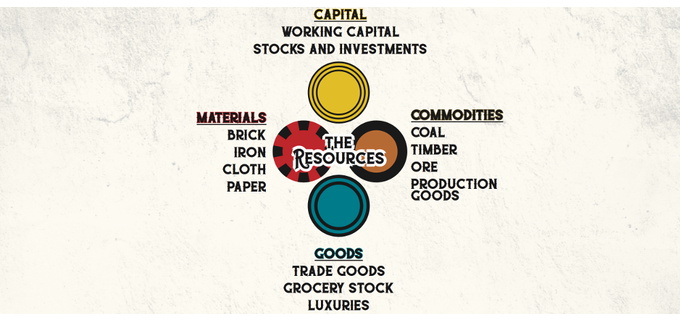 You build Factories connected by the railways. They produce Materials, Commodities, Goods and Capital...