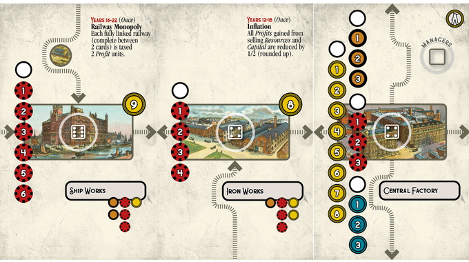 In the middle of the 19th century, the time of the Industrial Revolution. Take advantage of the steam age and build your railroad empire by developing railroads, expanding buildings, and moving passengers to make the most profit at the end of 12 rounds !