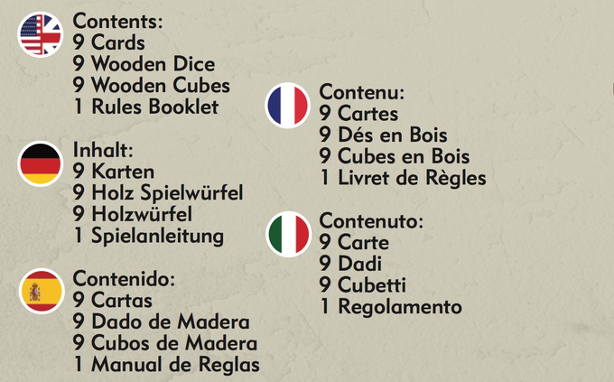 Each Nano9Game also contains 9 Wooden cubes and 9 Wooden dice.