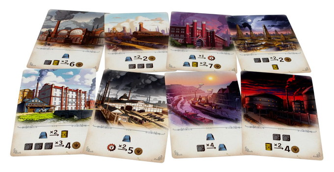 Furnace also includes capitalist cards that contain unique effects, and if you want, you can choose to deal one out to each player at the start of the game. For an additional challenge, you can require players to create a "production chain", with each newly acquired company card being placed somewhere in that chain and locked in position for the remainder of the game.