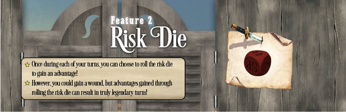However, the risk die often causes the player to gain wounds and sometimes story points for additional benefits. Sure you might gain wounds, but the small edges gained through rolling risk die can let players pull off truly legendary turns! Playing it safe is for other games!