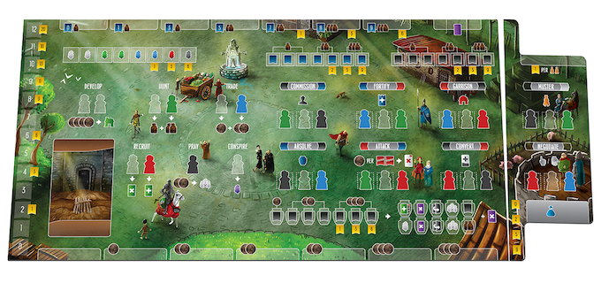 This expansion adds new extensions for both the main board and player boards. Players have a new attribute to manage and new actions available on each turn.
