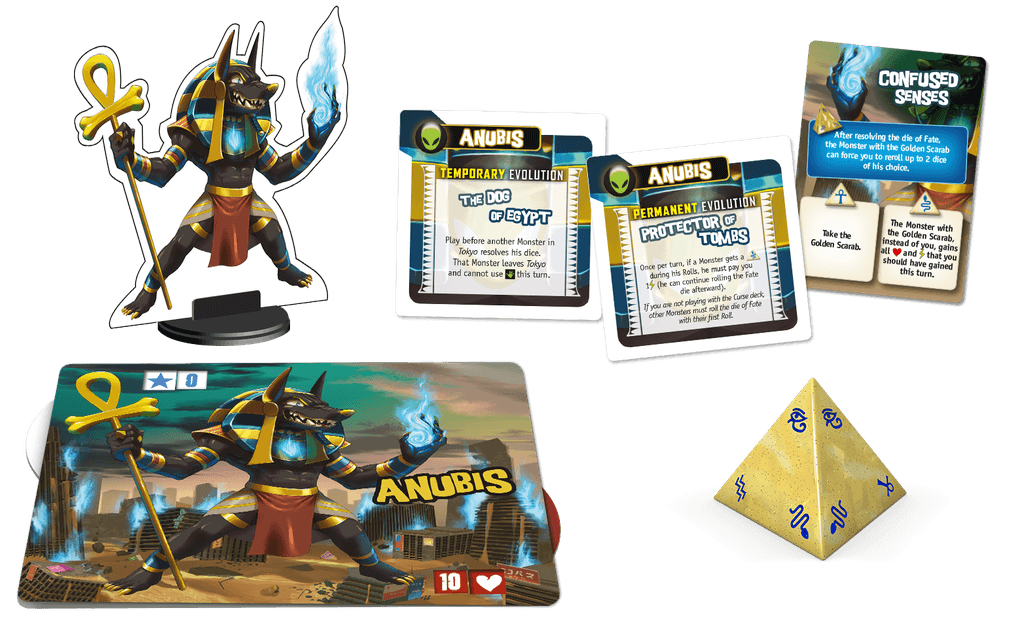 The Anubis Monster Pack is compatible with the King of Tokyo and King of New York base games and with all their expansions. The Anubis Monster Pack introduces a new game component in the form of the die of fate! You can use the die of fate in your games even if you play without Evolution cards or are not playing with Anubis.