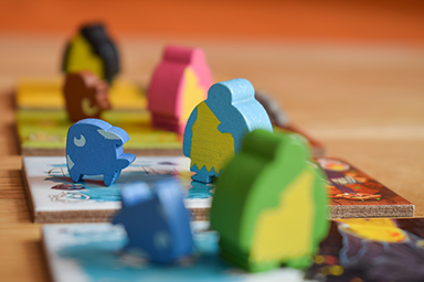 You earn points by collecting resources, with additional points when you have the majority of a type of resources. These resources allow you to bring cavemen to your territory, and each type of caveman has its own way to give you points based on their position.