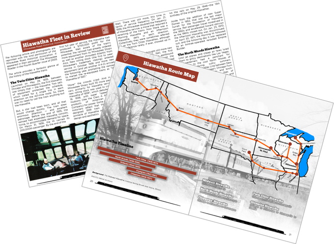 The theme of Volume 1 Issue 1 is the Milwaukee Road’s famous and historically significant Hiawatha. Highlights of this issue include: