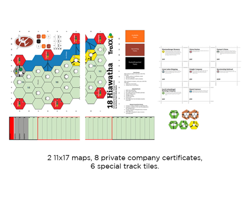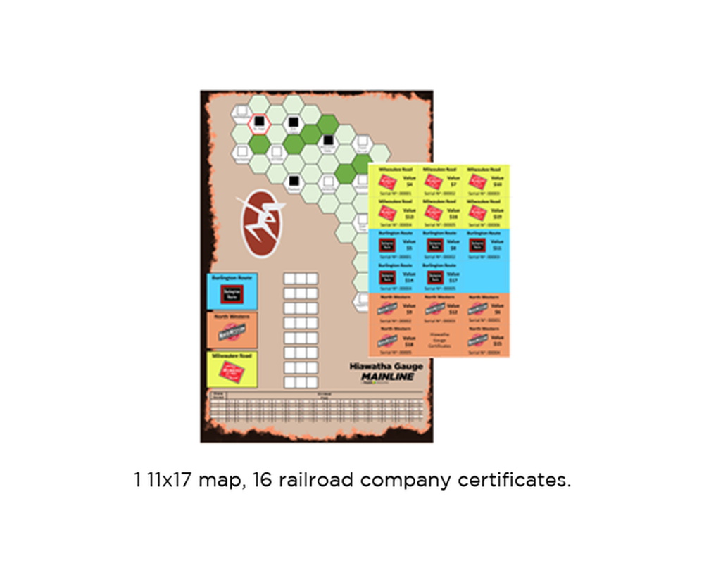 Each of the games included reflect the Hiawatha theme. Our magazine games provide you with new rules and maps to pair with the components of common railroad board games. Will I need to cut components out of my magazine, ruining it? No, the maps and any additional components are packaged separately from the magazine. The games in this issue of MAINLINE are: