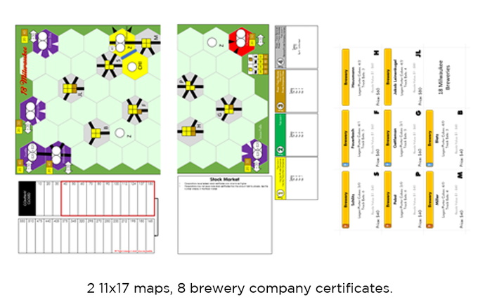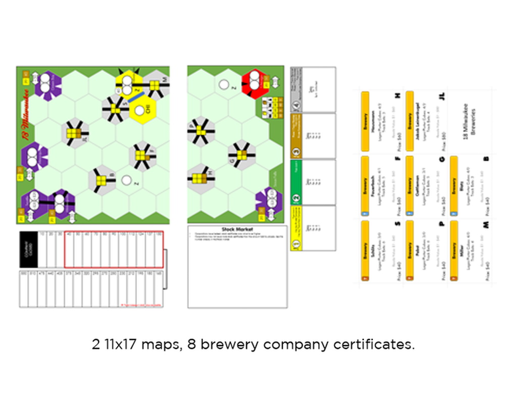 Beer and the Hiawathas made Milwaukee famous. Milwaukee was the pivot point in four of the five Hiawatha routes. Players own breweries as well as railroad companies and delivering shipping beer adds good revenue. But, the landscape can change and new towns can spring up and lengthen your routes. You will need a copy of 1846 to play 18 Milwaukee.