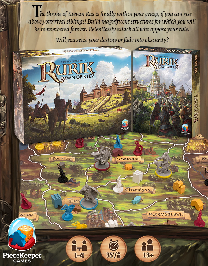 Rurik brings to life the ancient culture of Kievan Rus with game design by Russian designer Stanislav Kordonskiy and illustrations by Ukrainian artist Yaroslav Radeckyi.