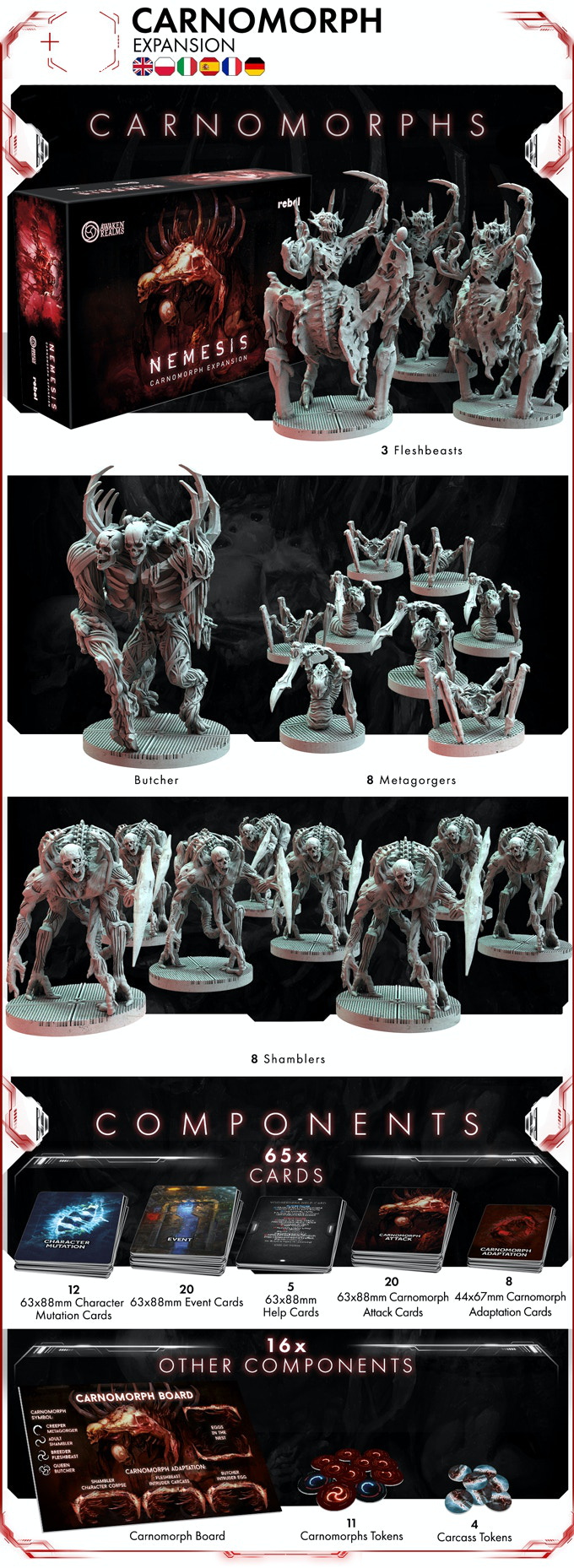 All in all this expansion will be designed in a way to give you constant pressure between trying to meet your goal and managing Carnomorphs on the ship.