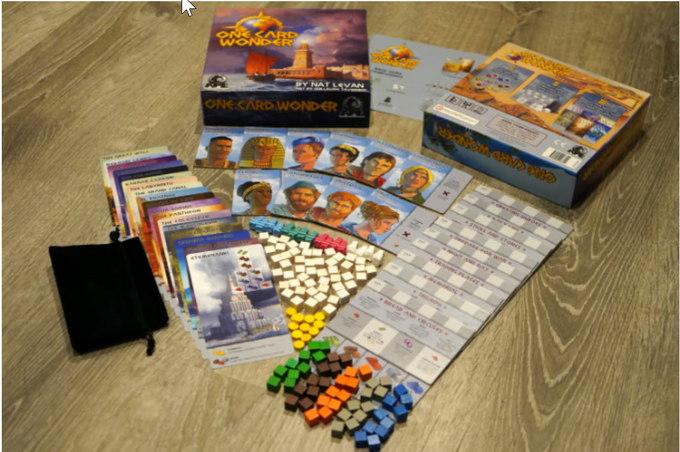 One Card Wonder is a family game of collecting resources and racing to complete a wonder that will be the envy of the world! Designer Nat Levan, who also designed New Bedford and Nantucket, has created a fast-paced, asymetrical resource collection game where you can learn about these true wonders while competing to build Supports and deploy influential Leaders as you collect the resources you need to achieve your wondrous goal.