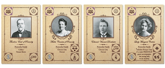 Throughout the game, a competitive courtship for the hand of the most eligible young gentleman and lady in the county presents specific renovation and reputation objectives. The player who best meets these objectives while accumulating victory points will win the hand of the wealthy love interest and the game.