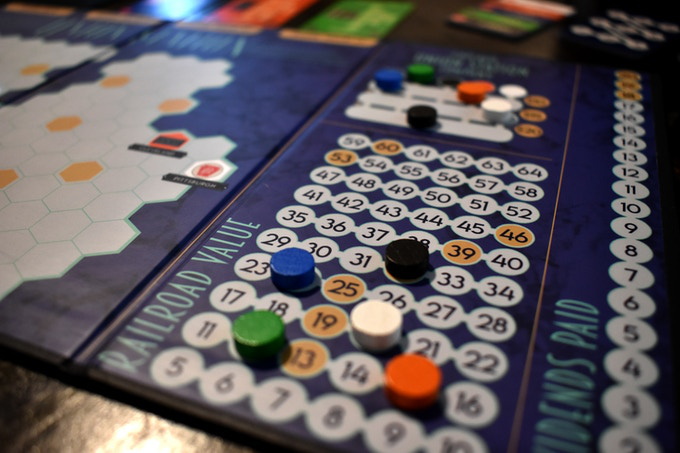 The game ends immediately when all of the Shares have been bought or sold off, 20 dividends have been paid, or railroad companies cannot lay any additional track. The players add together their cash in hand to the value of each of their shares, and the player with the most money wins.