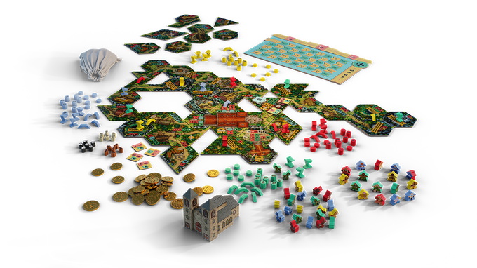 The game features irregular shaped tiles that connect together without a grid to form a village that is completely different every time. The tile placement organically creates interconnecting paths that the villagers use to transport resources across the village. This leads players to construct boards where no two games will ever feel the same. Since the buildings are communal, this also creates a fluid economy, where players are always working hard to provide the village with the resources that are most needed.
