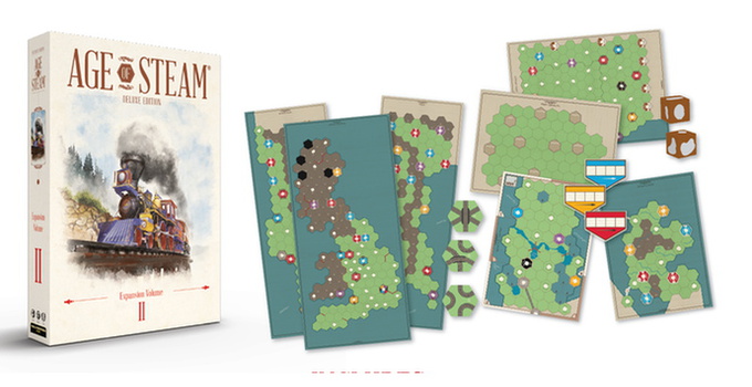 Expansion Volume II contain 7 new expansion maps, bundled in a storage box. Additional empty storage boxes are also available as an add-on. This Expansion Volume contain maps that have not been published in the new Age of Steam Deluxe style before, and some of which have never before been published! These maps cover a wide range of play counts and styles - each with its own unique twists and gameplay.