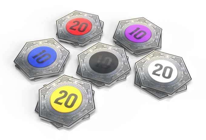 Metal Faro Markers to replace the cardboard ones originally included in the Ante Up expansion.