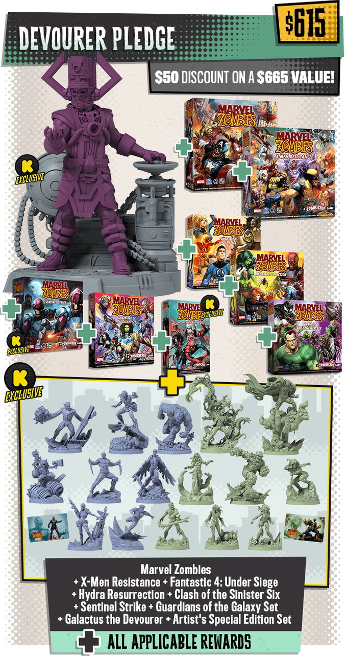Note: This is the Kickstarter Retail Pledge 2 which is very similar to the KS Devourer Pledge with some additional items. This pledge includes the Galactus the Devourer add-on. See description below for full list of items included for this package. Pls note shipping & handling will be charged for this item (except for pick-up orders).