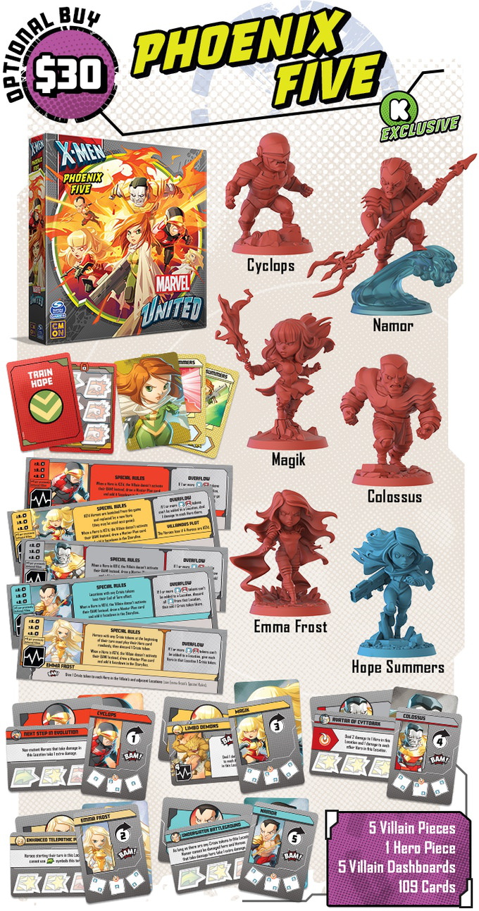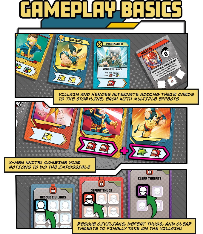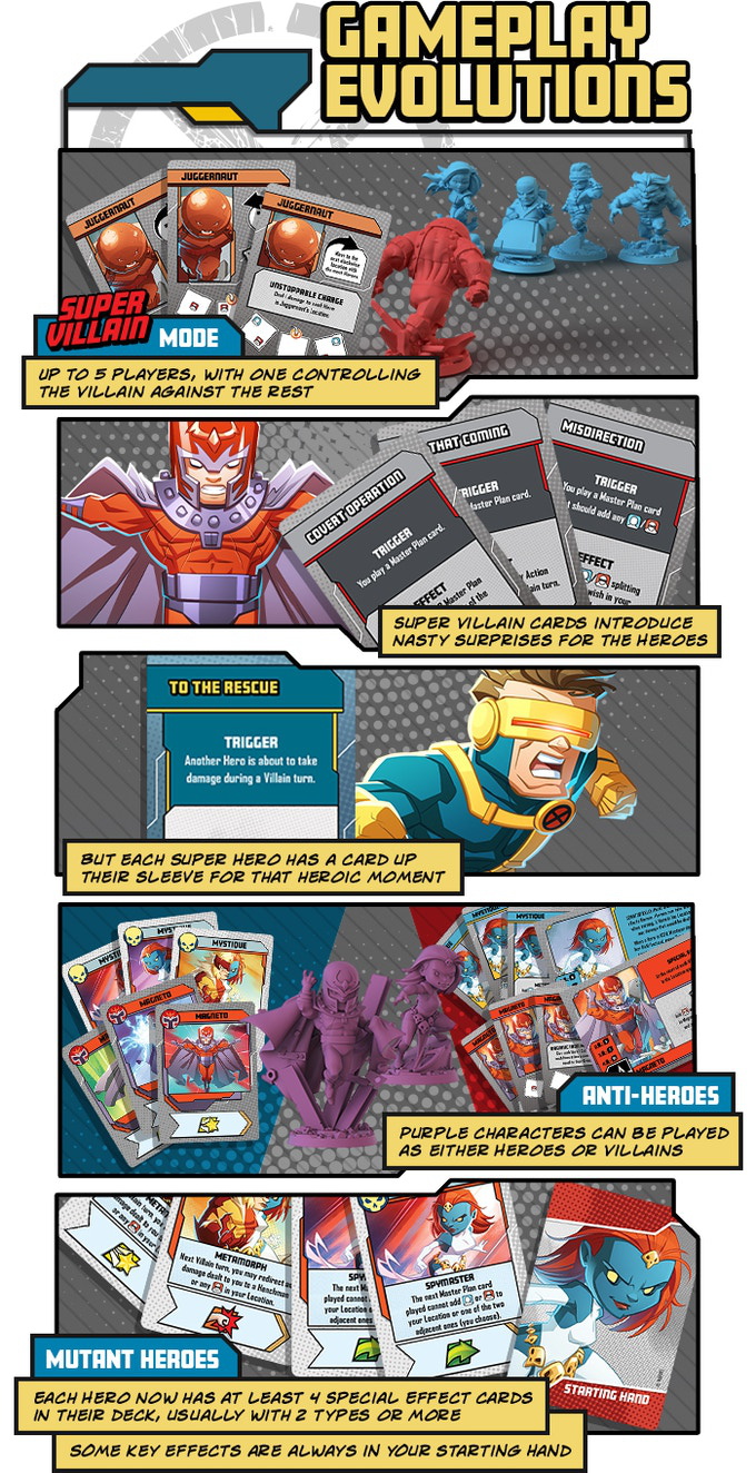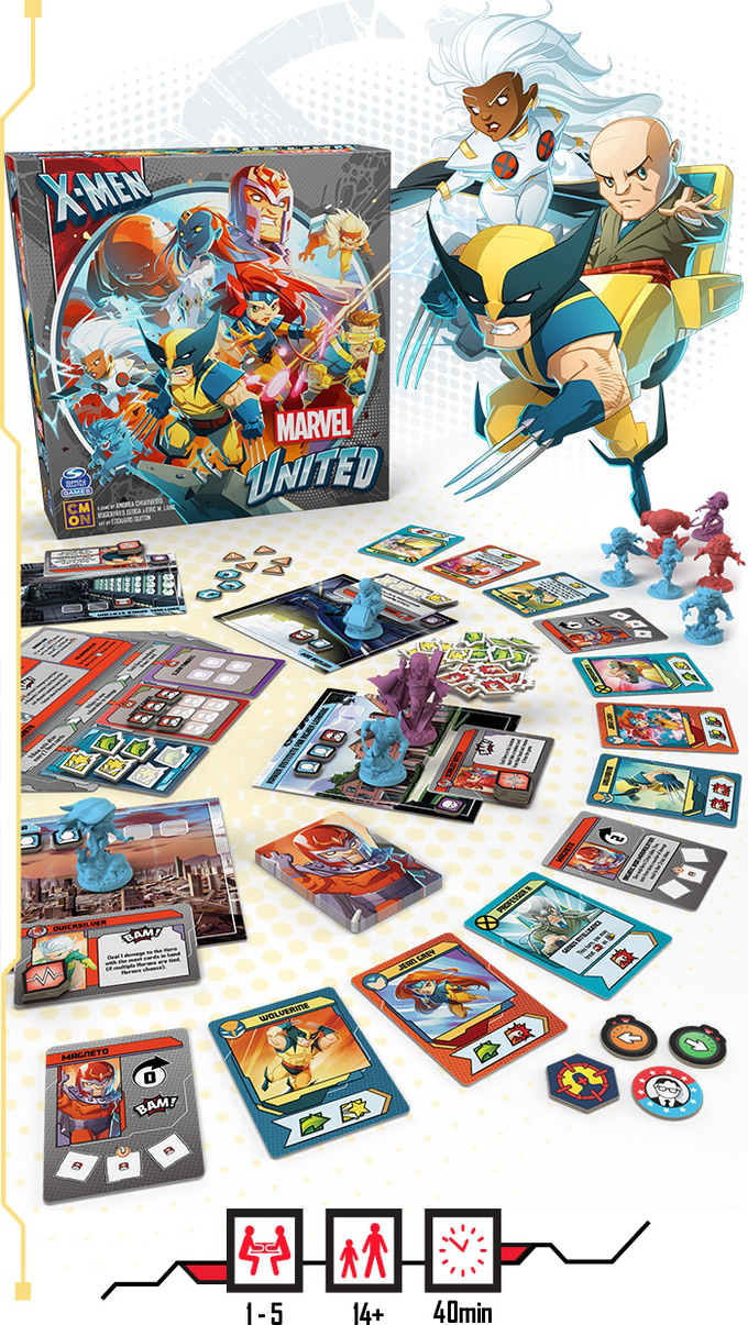 Marvel United is back, bringing the X-Men into this acclaimed fast-paced cooperative game. Build your team of mutant Heroes and join forces to thwart the master plan of the most powerful Villains in the universe. Now you can also choose to take direct control of a Super Villain, facing off against the other united Super Hero players!