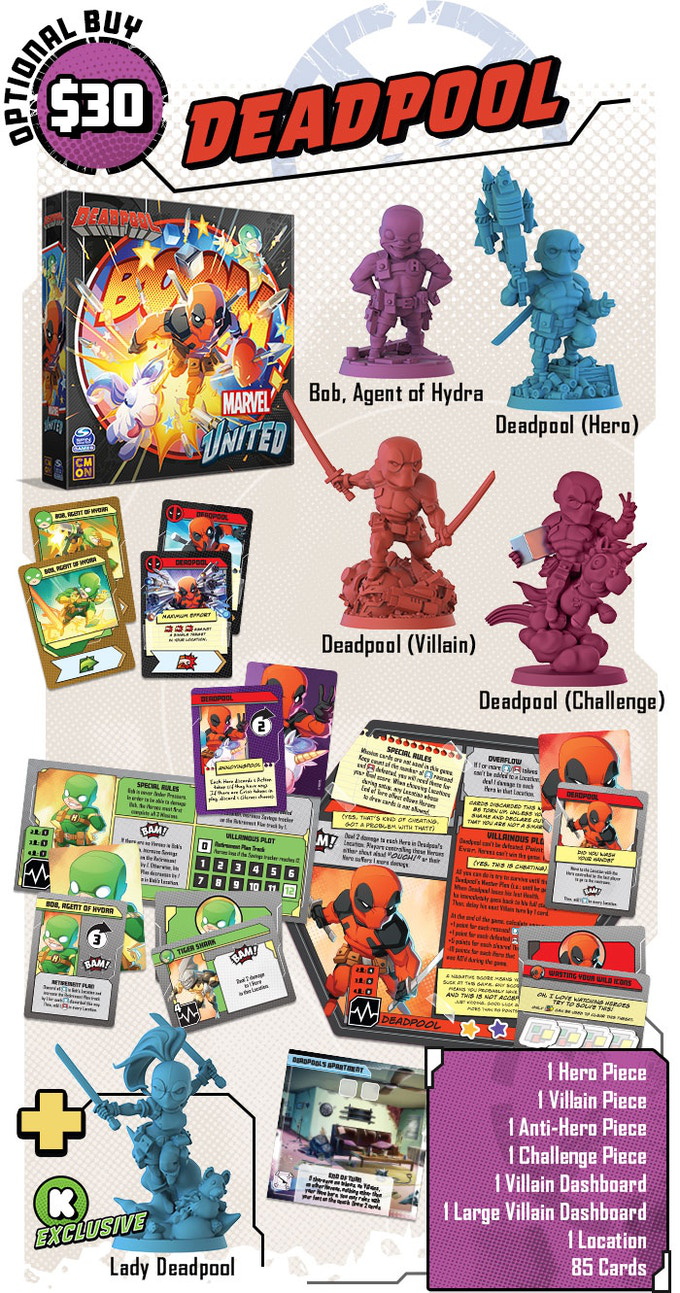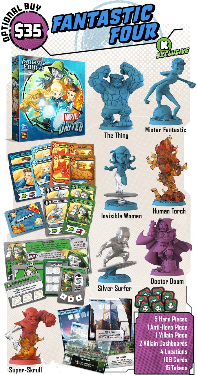 Simple rules, deep strategy, easy setup, quick playtime, variable difficulty, eye-catching artwork, and amazing character pieces, all united to bring you the most engaging Marvel play experience!