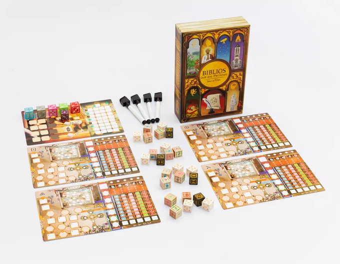 After 8 days, the game ends and the players calculate scores. As in the original Biblios, the relative value of books changes during the game, so players are unsure of which books will be most valuable until the end of the game.