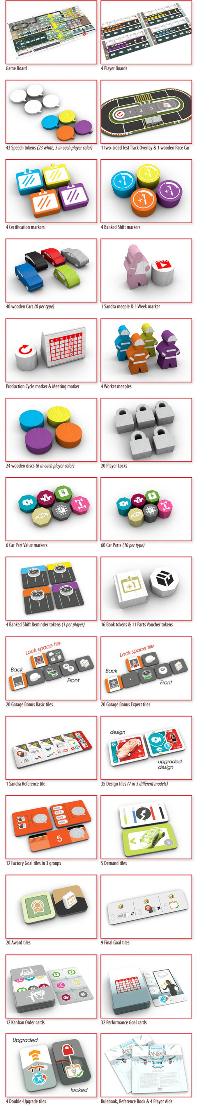 Kanban EV is a game that focuses on resource and time management that puts you in the driver's seat of an entire production facility, racing for factory goals and the highest level of promotion. You earn production points (PP) for performing various actions in the game, and the player with the most PP at the end of the game wins.