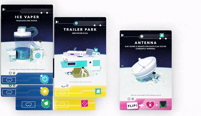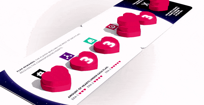Hearts measure the popularity of your base back on Earth, and the most popular base at the end of era three will become the capital city of the moon, winning the game!
