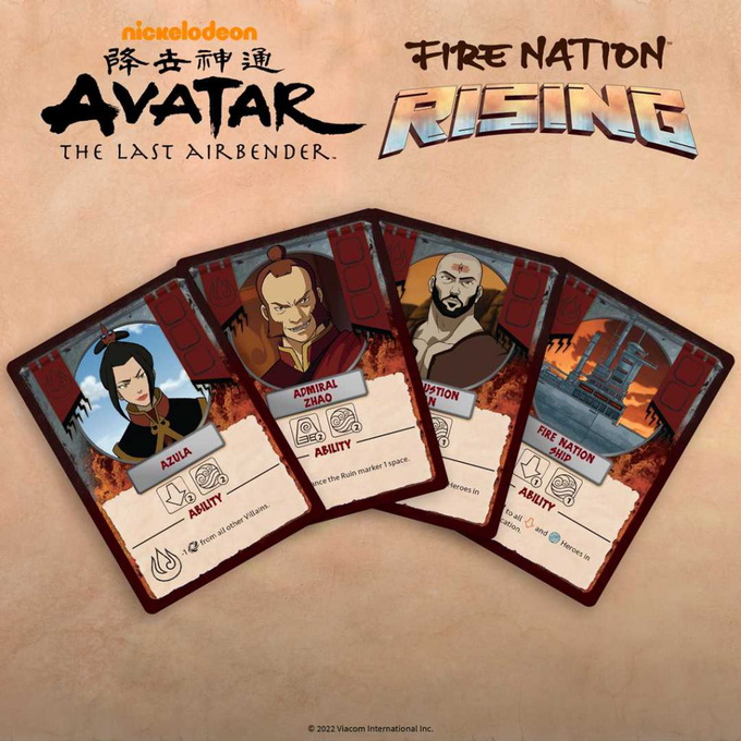 Avatar: The Last Airbender Fire Nation Rising is a cooperative card and dice game for 1-5 players who take command of Avatar Aang, Katara, Sokka, Toph, and Zuko as they fight back against the Fire Nation to restore balance to the world.