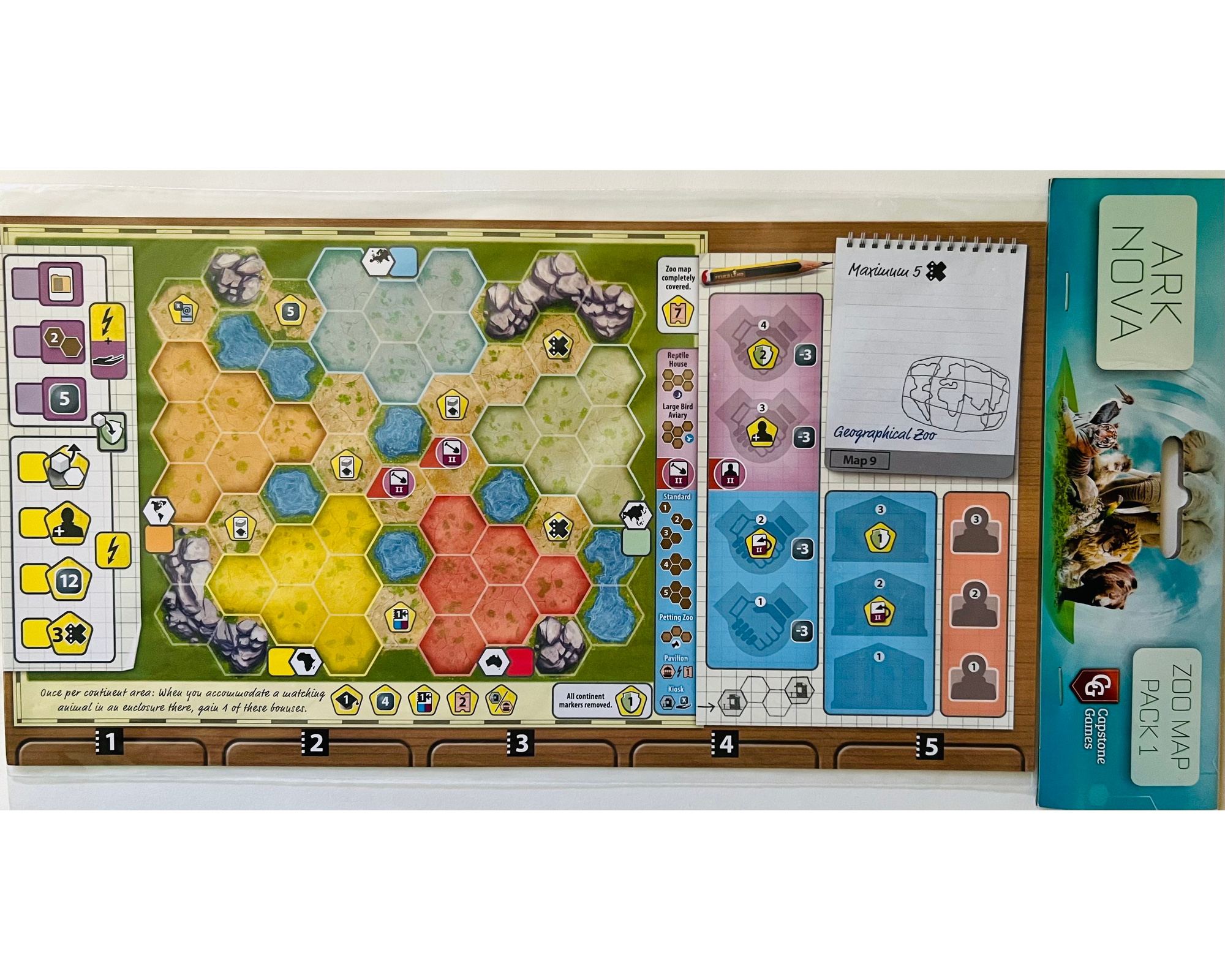 Expand your collection of Zoo Maps in Ark Nova with the Zoo Map Pack 1!
