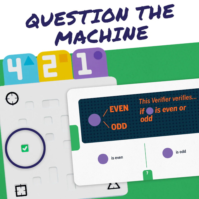 The Goal? Find the secret code before the other players, by cleverly questioning the machine. With Turing Machine, you’ll use an analog computer with unique components made of never-before-seen perforated cards.