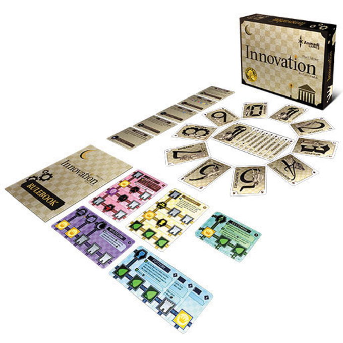 This game by Carl Chudyk is a journey through innovations from the stone age through modern times. Each player builds a civilization based on various technologies, ideas, and cultural advancements, all represented by cards. Each of these cards has a unique power which will allow further advancement, point scoring, or even attacking other civilizations. Be careful though, as other civilizations may be able to benefit from your ideas as well!