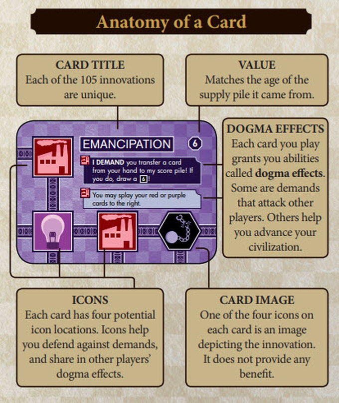There are a few minor new mechanics. One is the compel effect. This effect is similar to the demand effect of the base game, except that it affects players who have more icons of a given type rather than fewer.
