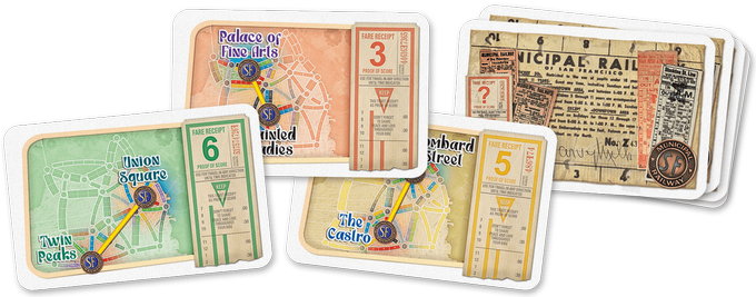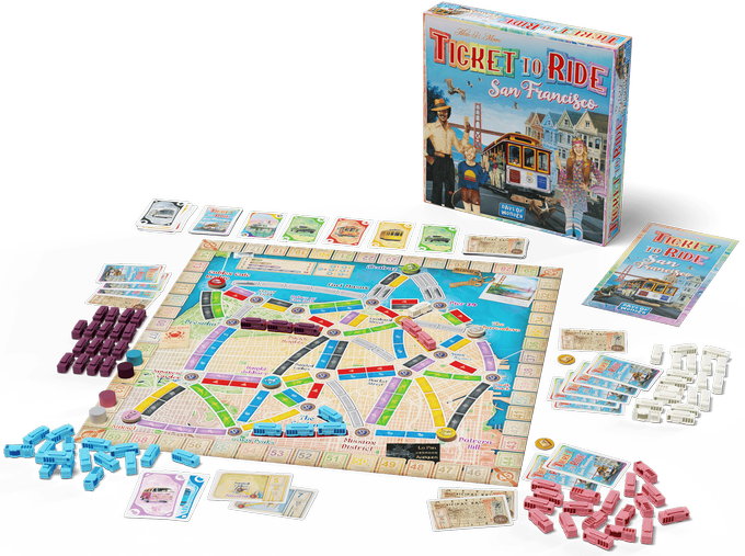 Ticket to Ride: San Francisco features the familiar gameplay from the Ticket to Ride game series — collect cards, claim routes, draw tickets — but on a map of 1960s San Francisco that allows you to complete a game in no more than 15 minutes.