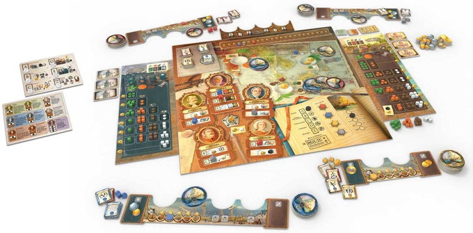 In East India Companies, players manage a large shipping company that trades with far flung trading posts in India. They must manage their ships and invest in buying shares of their own company or those of their competitors. Most importantly, players have to keep an eye on the constantly fluctuating market prices! Is it better to invest your money in the stock market or in buying goods? Do they prefer to use fast ships with low tonnage or slower ships with larger holds? Whatever the players choose, their strategies will influence those of their opponents.