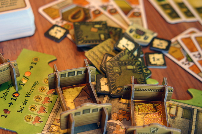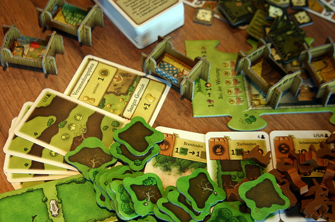 Also, winter has come to Agricola: In the feeding phases, you must not only feed two to five hungry mouths but also provide them a warm place to sleep. The better the material of your house, the less fuel it will take to heat it. Fuel is a new type of good that can be gained from wood or by cutting peat in your moors.
