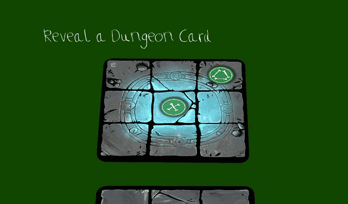You explore the dungeon by drawing cards from the dungeon deck and placing each card out into the layout. This means every game you play will have its own unique dungeon map - providing a different experience each time.